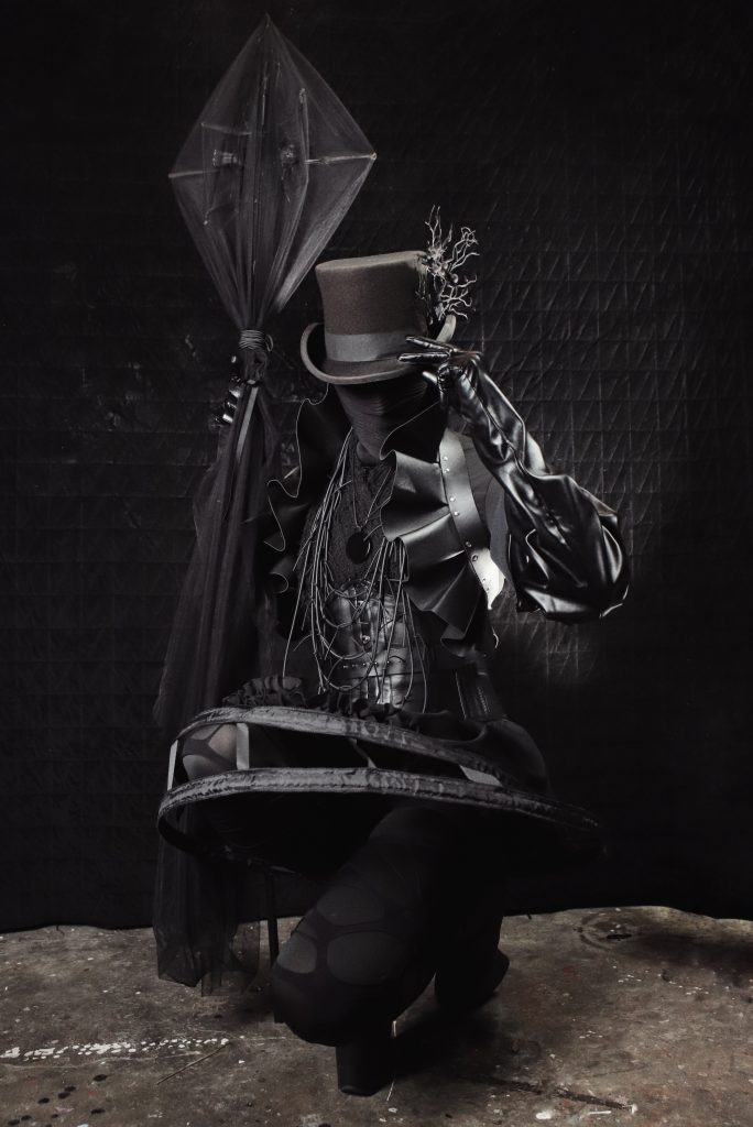 In accordance with tradition, funeral mutes typically wore a white shirt, black suit, black shoes, black gloves, and a large black sash across their torso. They also wore a black beaver hat, swathed with crepe with a narrow length which trailed down their back. For most funerals, the mute’s hat was swathed with black crepe, unless the funeral was for a child or an unmarried person. In those cases, the mute’s hat was wrapped with white crepe and the mute wore a white sash and white gloves. Mutes also carried tall staffs which were believed to harken back to the staves of the castle porters who stood watch during ancient baronial funerals. These staffs had a cross-piece affixed near the top from which a length of crepe was hung. The crepe was secured with a large bow near the middle of the staff. The crepe which was draped over the mute’s staff was usually black, again, with the exception of funerals for children or unmarried people, when the staff was draped in white crepe.
